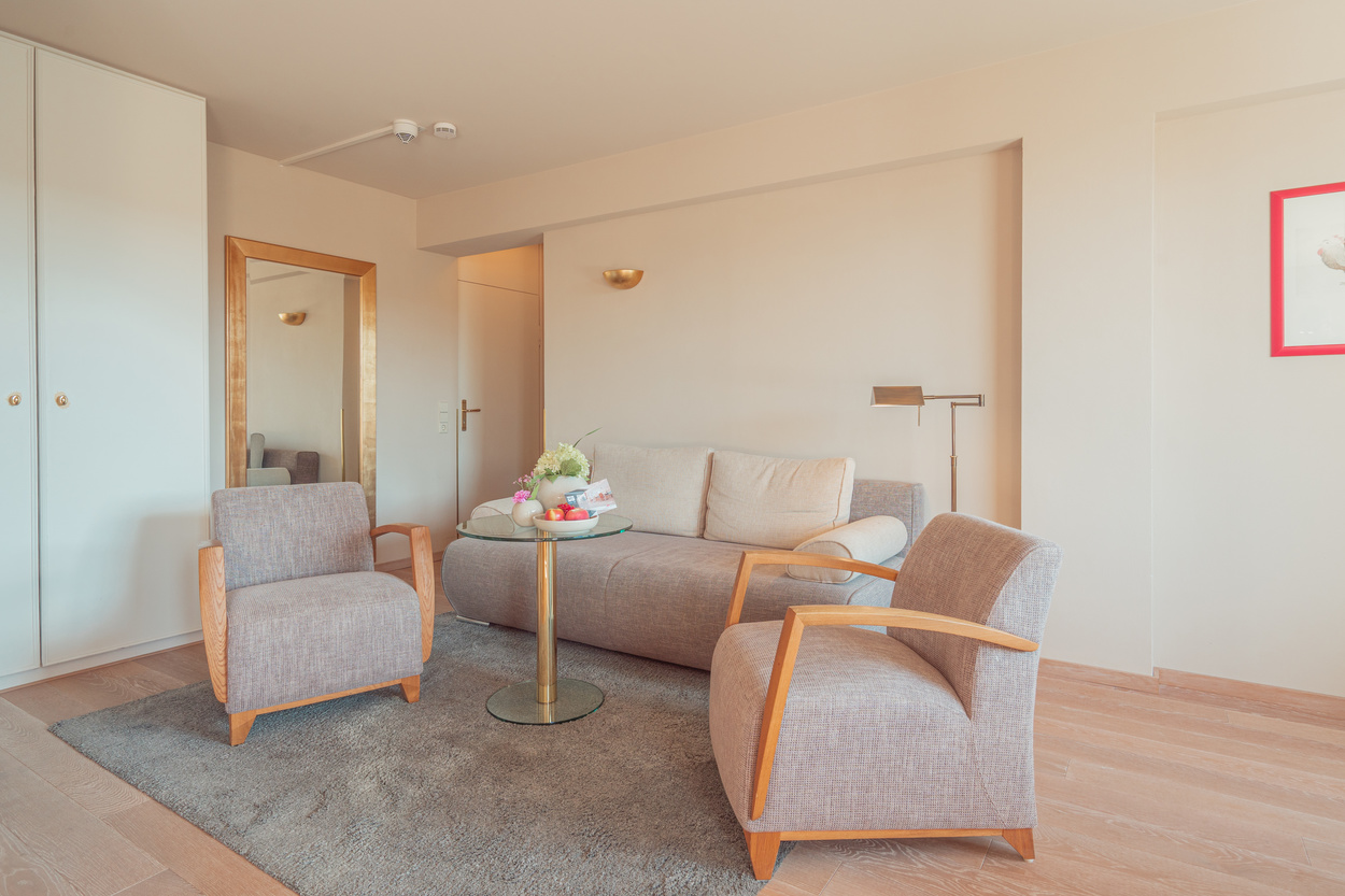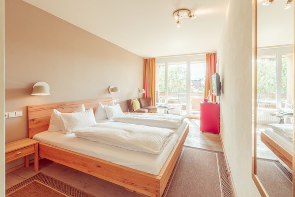 Doppelzimmer mit Badewanne oder Dusche, WC, Fön, TV, Telefon, Radio, Safe, Minibar, teilweise Balkon, gemütlicher Sitzecke und Schreibtisch : 75,- bis 85,- pro Person inkl. Frühstück