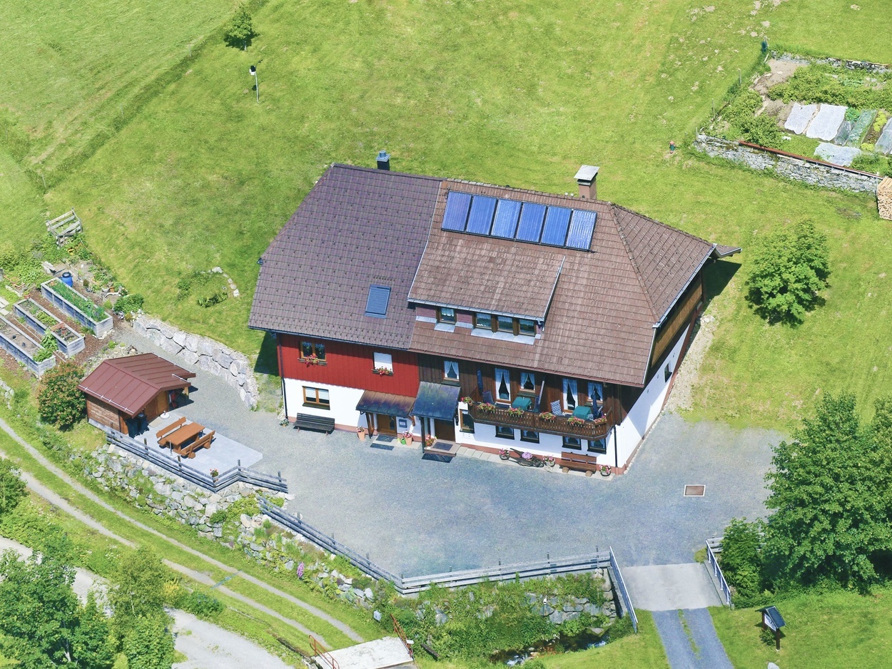 Ab auf den Berg! Naturnahe Unterkunft für Urlaub, Auszeit, Freizeit im sonnigen Hochtal im Südschwarzwald. Freistehend, in ruhiger Lage, auf 1.020 m Höhe mit Weitblick und viel Platz direkt am Bach.zur Unterkunft